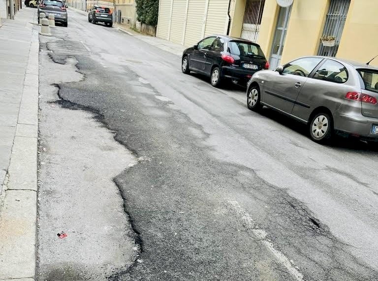 Asfalto da rifare in via Luigi Gallo, Sturlese: "Situazione pericolosa, si intervenga con urgenza"