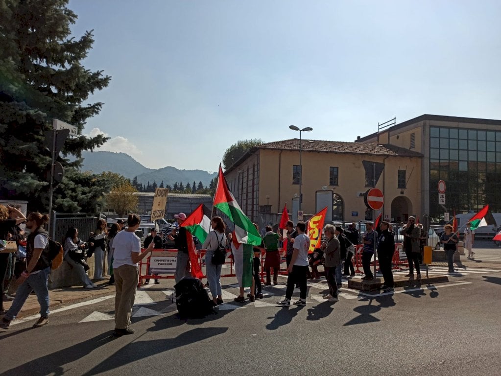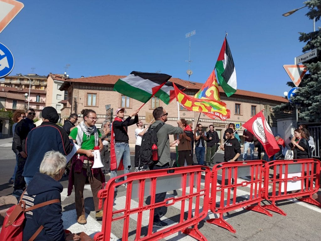 Il presidio all'esterno dello stadio borgarino. Maglione (Calp): "Sono stati esclusi i concorrenti russi, mentre chi sta compiendo uno sterminio di massa è liberamente qui"Come annunciato nei giorni scorsi, si è tenuto a partire dalle ore 12.30 di oggi, venerdì 10 ottobre, il presidio di protesta organizzato all'esterno dello stadio di Borgo San Dalmazzo, dove si stanno svolgendo i mondiali di mondioring, disciplina che prevede l’utilizzo di cani in una serie di prove di abilità e situazioni che simulano alcune circostanze reali. Consistente il dispiegamento di forze dell’ordine, circa una quarantina i manifestanti presenti: a far scattare la protesta la partecipazione alla competizione di sette concorrenti israeliani (tre dei quali, secondo gli organizzatori della mobilitazione, hanno fatto o fanno tutt’ora parte dell’Idf). L’iniziativa è stata promossa dal Collettivo Autonomo Lavoratori Portuali di Genova, hanno aderito diverse realtà, tra le quali Usb Piemonte, Potere al Popolo e coordinamento Cuneo per Gaza.