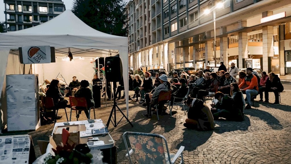 In queste settimane di presidio ammettiamo di aver avuto un punto di vista privilegiato sulle difficoltà sociali che attraversano Cuneo. Abbiamo conosciuto la solitudine delle persone, il desiderio di aggregarsi e di costruire comunità. Ci siamo ritrovati (involontariamente) a confrontarci concretamente e quotidianamente con situazioni di tossicodipendenza, alcolismo, povertà abitativa e problematiche psicosociali — situazioni che abbiamo visto aumentare in occasione di eventi quali l’Oktoberfest e la Fiera del Marrone. Vivere il presidio ci ha permesso di confrontarci anche con coloro che non condividono le nostre posizioni e di portare nella piazza testimonianze importanti, facendole uscire dai classici salotti. Abbiamo scelto di essere visibili e inseriti nella città perché ci sentiamo parte attiva di essa, aperti anche a coloro che hanno sollevato dubbi e accuse. Il presidio non è un gazebo: il presidio è azione, informazione, rete di relazioni necessarie per tutti, come antidoto ad anni di individualismo imperante. Continueremo a organizzare incontri, discussioni, azioni e manifestazioni spinti dal desiderio di fare pressione sulle istituzioni, sull’Europa e sul nostro governo. Per noi il presidio non è un luogo in cui rinchiudersi, bensì un punto da cui partire per costruire ponti.