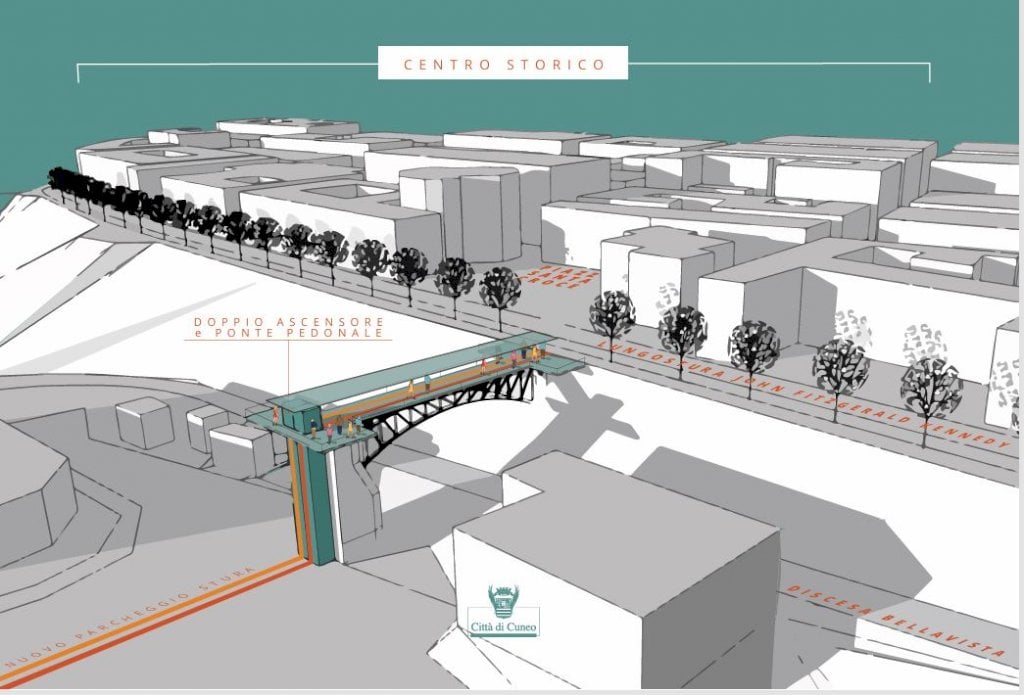 La Giunta ha approvato il finanziamento da un milione e 400 mila euro. Manassero: "L’esperienza dell’ascensore inclinato dal parcheggio delle piscine è vincente, da lì partiremo per migliorare"La Giunta regionale ha approvato la destinazione di 1.432.606,68 euro al Comune di Cuneo per la realizzazione di un ascensore e una passerella pedonale ad uso pubblico, per unire il futuro parcheggio di testata del Campidoglio con l’altipiano. Si tratta di un collegamento che entrerà a tutti gli effetti nei servizi di trasporto pubblico locale della Conurbazione di Cuneo.