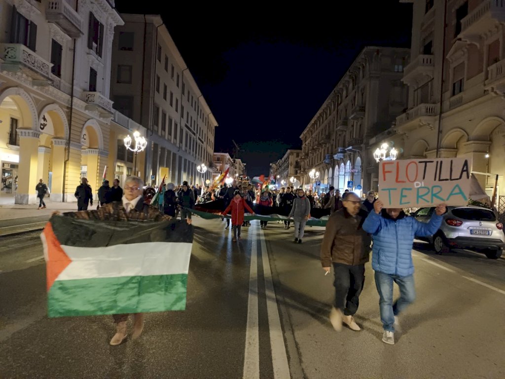 In corteo per Gaza a Cuneo dopo l’abbordaggio della Sumud Flotilla