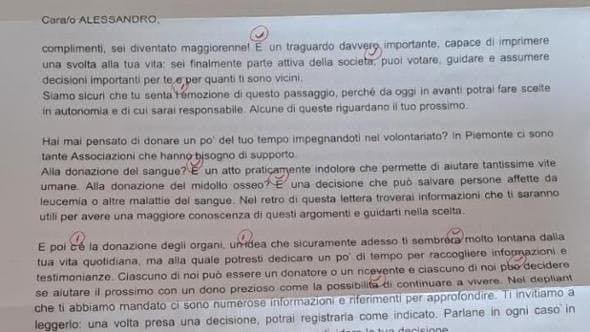 Un’iniziativa lodevole nella sostanza, ma dalla forma sconclusionata, quasi a trasformare il tutto in una sorta di autogol. O, quantomeno, in una figura barbina per la Regione Piemonte. Nelle scorse settimane i neodiciottenni piemontesi si sono visti recapitare una lettera, firmata in calce dal presidente Alberto Cirio in persona, che li sensibilizzava su temi legati alla donazione degli organi, del sangue e del midollo e all'importanza del volontariato. Iniziativa senz'altro meritoria, come detto: la missiva, però, si presentava stracolma di errori ortografici e grammaticali in ogni suo passaggio. Dai “c è” senza apostrofo a “societa” senza accento, passando per il verbo “e” non accentato e per tanti altri scivoloni e frasi costruite in maniera quantomeno fantasiosa.