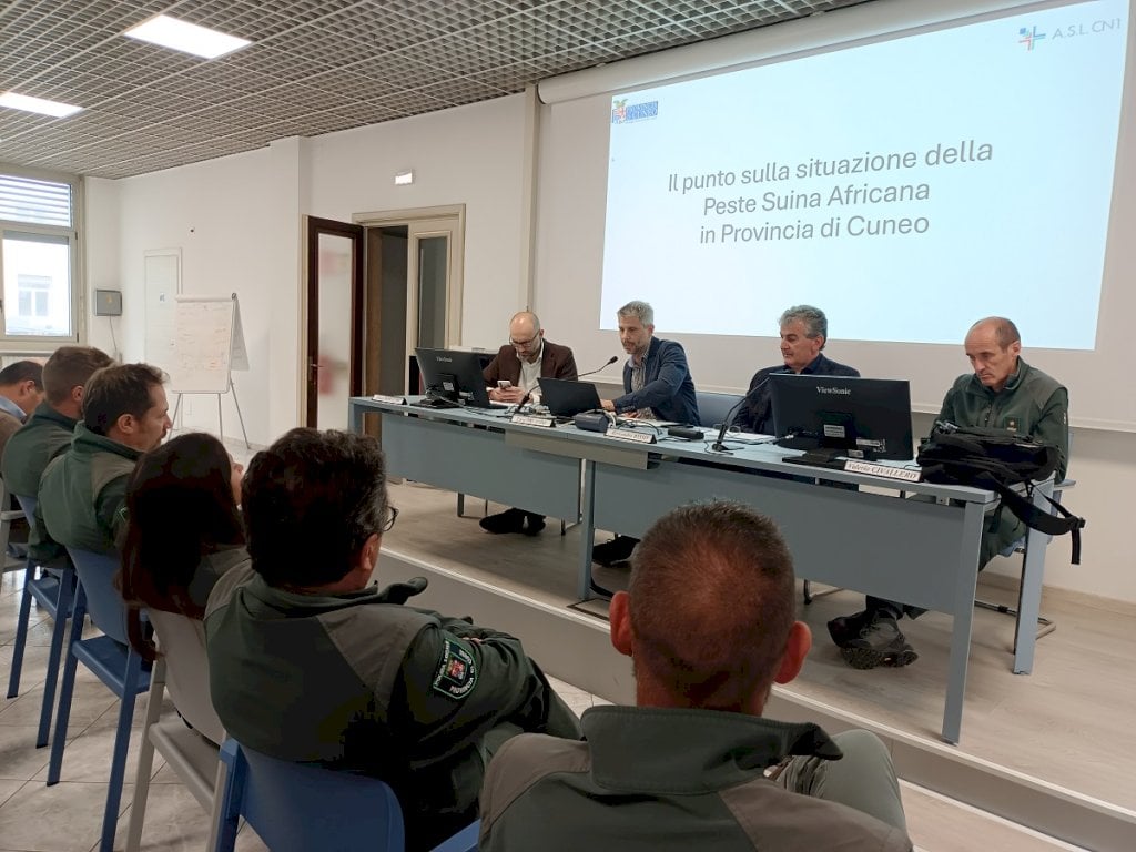 A squadernare i numeri è il dirigente del settore Supporto al territorio Alessandro Risso. In ambito provinciale, spiega, ci sono 5.875 cacciatori e oltre 4.300 sono stati formati sui principi di biosicurezza. Quelli iscritti al registro regionale per gli abbattimenti sono però solo 555: 278 partecipano attivamente al controllo, altro 150 hanno dato la disponibilità ad abbattere cinghiali in gabbia. La Granda vede al momento 5 comuni in zona II (zona di restrizione intermedia) e 26 comuni in zona I (aree ad alto rischio, limitrofe a zone infette), ma finora nessuna positività.