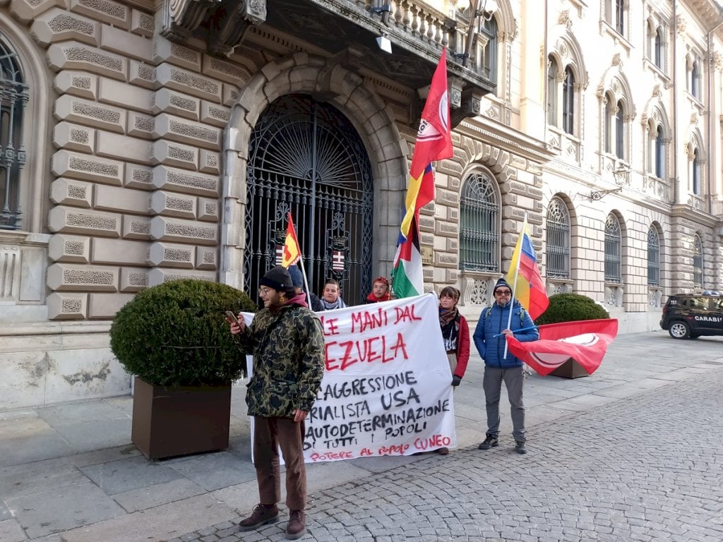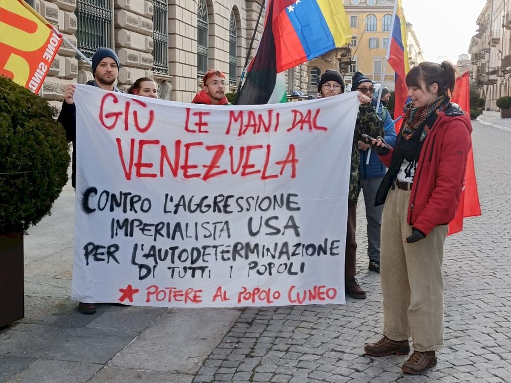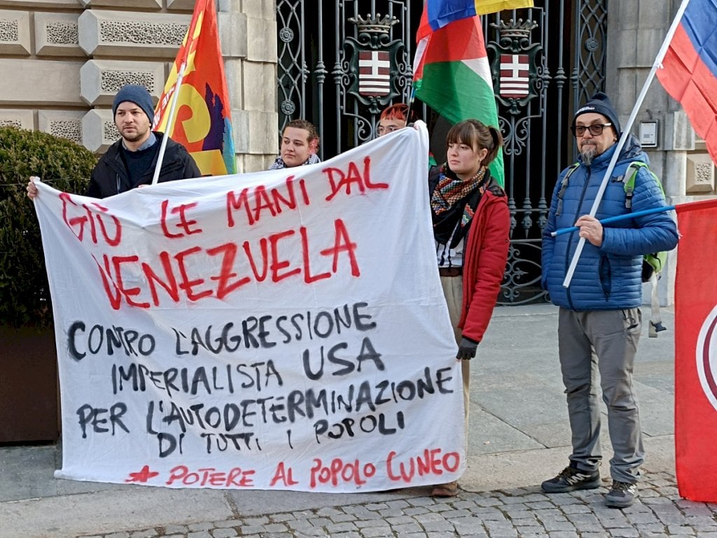 “Non siamo qui per santificare un leader ma per denunciare una menzogna” dicono gli aderenti al presidio cuneese, indetto davanti alla prefettura“Non siamo qui per santificare nessun leader ma per denunciare una menzogna: l’idea che un pugno di Stati abbia la responsabilità di decidere chi è democratico e chi no”. Lo dicono i manifestanti nel presidio di Potere al Popolo, ritrovatisi davanti alla prefettura di Cuneo nel pomeriggio per contestare l’aggressione degli Stati Uniti al Venezuela e il sequestro del presidente Nicolas Maduro e della moglie.