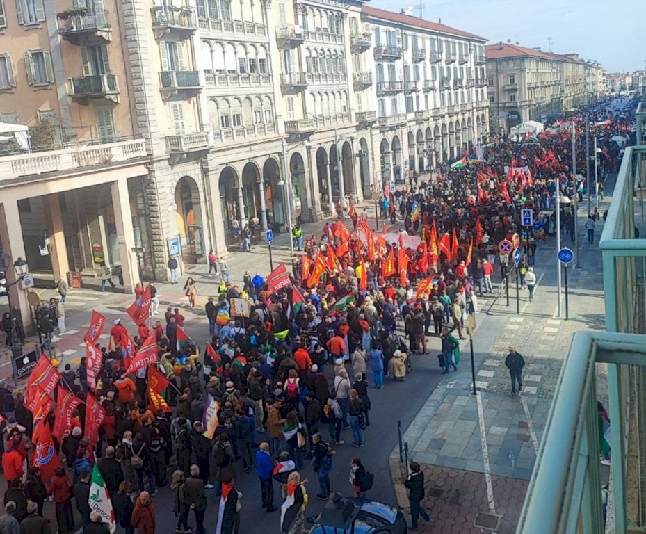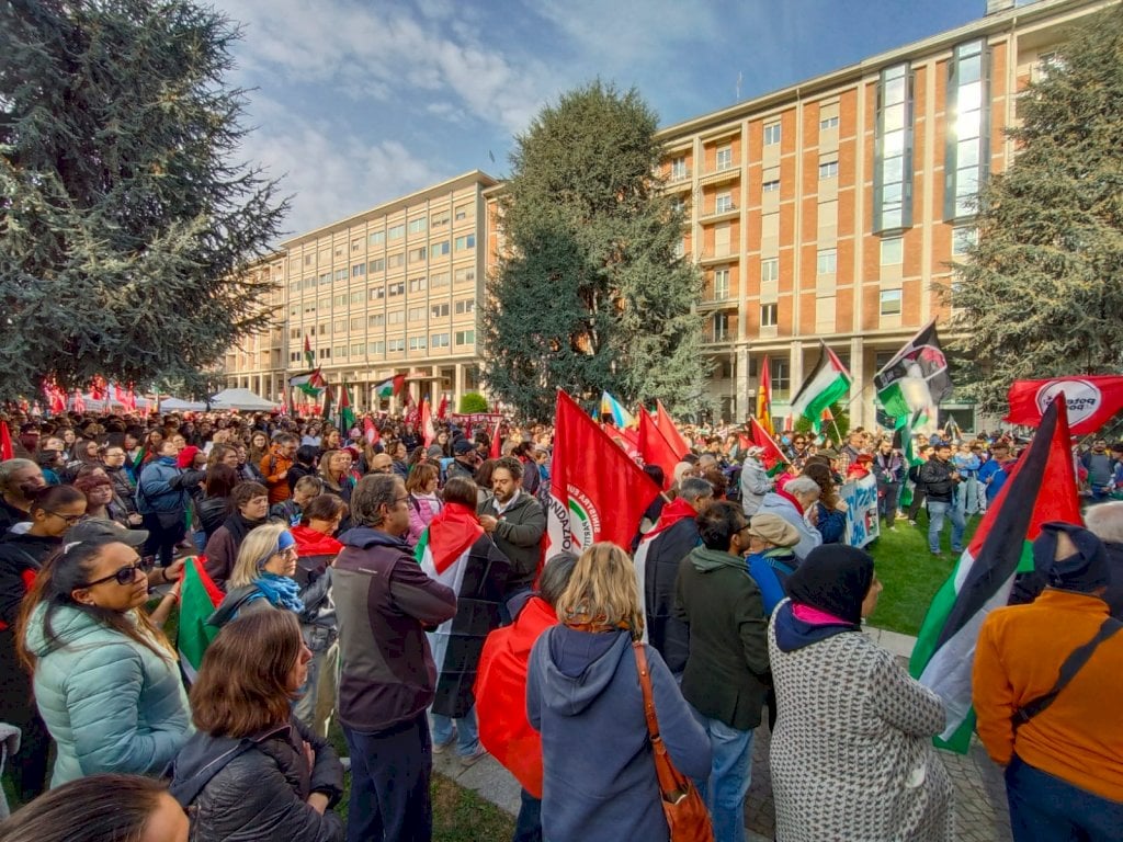 Folta la rappresentanza studentesca e quella sindacale, in occasione dello sciopero generale di Cgil e autonomi. Il segretario provinciale della Cgil Piertomaso Bergesio ringrazia “tutte le persone, soprattutto i più giovani, che stanno facendo questo presidio da domenica: uno spazio fisico dove ci siamo sentiti meno soli davanti alla tragedia che si sta consumando”. In piazza Europa gli interventi di apertura: “Siamo in questa piazza - dice Bergesio - anche per noi, perché sappiamo che il futuro passa attraverso la pace”. Una nota polemica sui “vetri rotti che urtano i benpensanti”, mentre “la violenza criminale, sociale ed economica, viene agitata continuamente anche nel nostro Paese”.