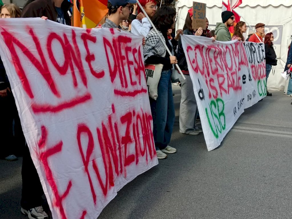 Sara Doronzo del Cub ricorda il prezzo pagato dalla scuola in questa guerra: dall’inizio delle ostilità 396 scuole hanno subito un impatto diretto, 80 sono state completamente distrutte. Oltre 12800 studenti e 800 tra insegnanti e personale amministrativo sono stati uccisi e 625mila bambini non hanno avuto accesso all'istruzione per oltre un anno: “La Palestina non è e non può essere slegata dal rifiuto del riarmo europeo: 800 miliardi di euro in armi serviranno per nuove guerre, nuove macerie e nuovi lutti”. Massimo Gabella dell’Usb plaude al tentativo di forzare il blocco navale: “Gli attivisti della Global Sumud Flotilla sono stati fermati ma hanno dimostrato una volta di più la natura terrorista e piratesca dello Stato di Israele”.