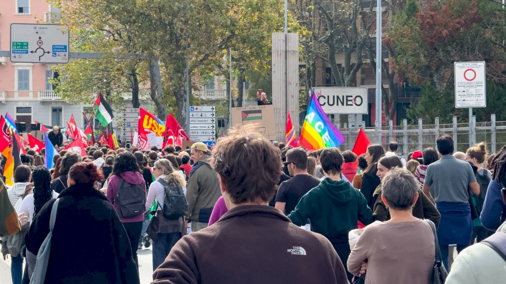 “Siamo più di cinquemila” dicono gli organizzatori. Bergesio (Cgil): “I vetri rotti urtano i benpensanti, c’è violenza sociale ed economica anche nel nostro Paese”“Dal fiume al mare Palestina libera” recita lo striscione che apre il corteo del coordinamento Cuneo per Gaza. Un fiume di gente è quello che scende in piazza Europa, per muoversi verso il centro cittadino: “Siamo più di cinquemila” dicono gli organizzatori.