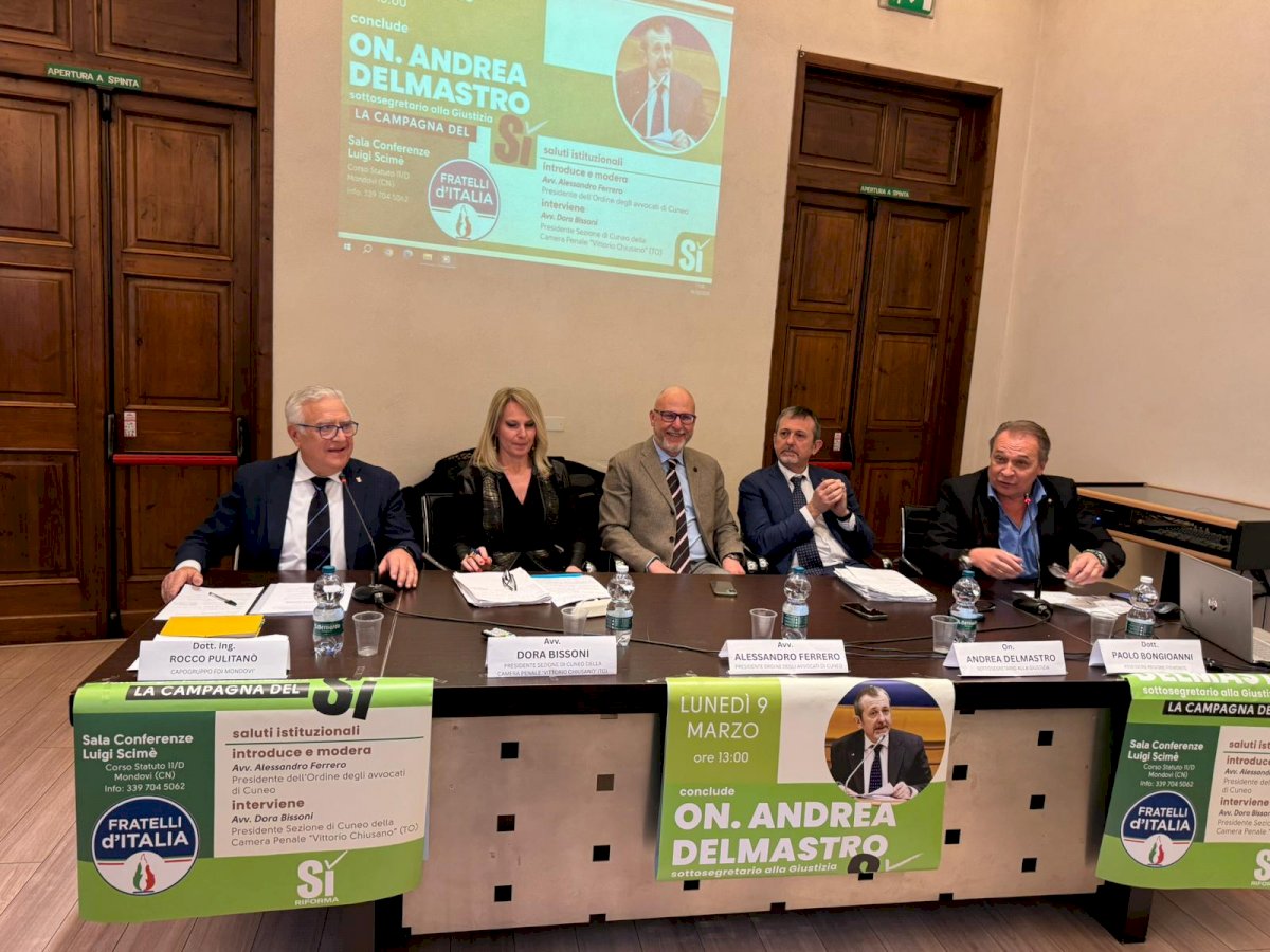Il sottosegretario alla Giustizia: “La parità processuale non può esserci se pubblico ministero e giudice condividono lo stesso percorso professionale”Sala conferenze gremita per l’incontro promosso dal Coordinamento provinciale di Fratelli d’Italia, insieme al circolo di Mondovì, dedicato alla campagna per il Sì al referendum sulla riforma della giustizia. L’appuntamento, ospitato alla Sala Luigi Scimè di Mondovì, ha visto la partecipazione di numerosi amministratori e rappresentanti istituzionali. Presenti, tra gli altri, l’assessore regionale Paolo Bongioanni, i consiglieri regionali Marina Bordese, Claudio Sacchetto e Federica Barbero, William Casoni e Roberto Russo per il Coordinamento provinciale FDI. Decisamente numerosa presenza di sindaci provenienti dal territorio cuneese e da altre realtà del Piemonte, e di cittadini e amministratori locali.