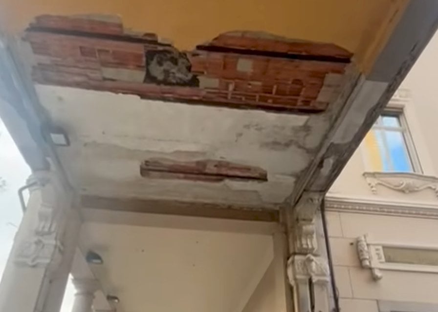 Crollano calcinacci sotto i portici di via Roma ad Alba: danneggiata un'auto
