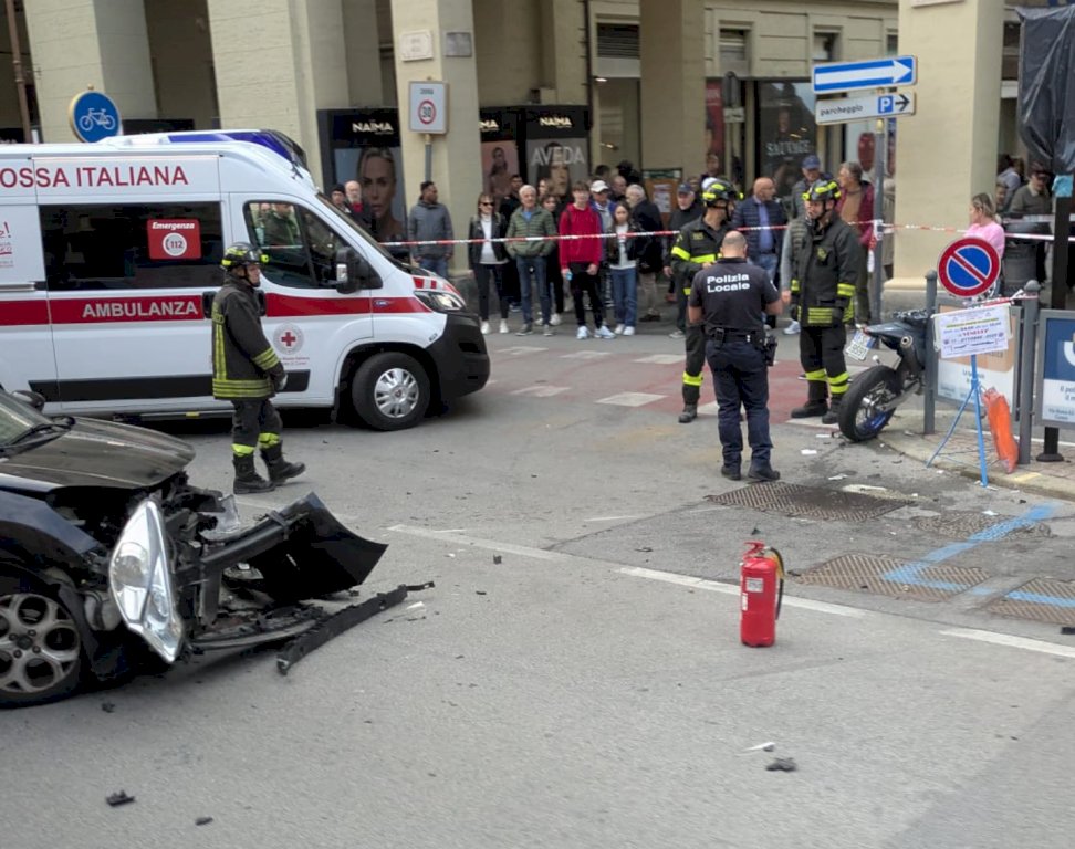 Il giovane trasportato al "Santa Croce". L'incidente all'angolo con via XXVIII AprileIncidente stradale nel centro di Cuneo nel pomeriggio di oggi, giovedì 16 ottobre. I fatti intorno alle ore 16.30 in corso Nizza, all'angolo con via XXVIII Aprile, dove si sono scontrare un'auto guidata da una donna e una motocicletta sulla quale si trovava un ragazzo. Ad avere la peggio il centauro, rimasto ferito nel violento impatto: il giovane, sedicenne, è stato trasportato al “Santa Croce” in ambulanza in gravi condizioni, classificate in codice rosso, pur essendo cosciente al momento del trasferimento. Sul posto anche Polizia Locale e Vigili del Fuoco.