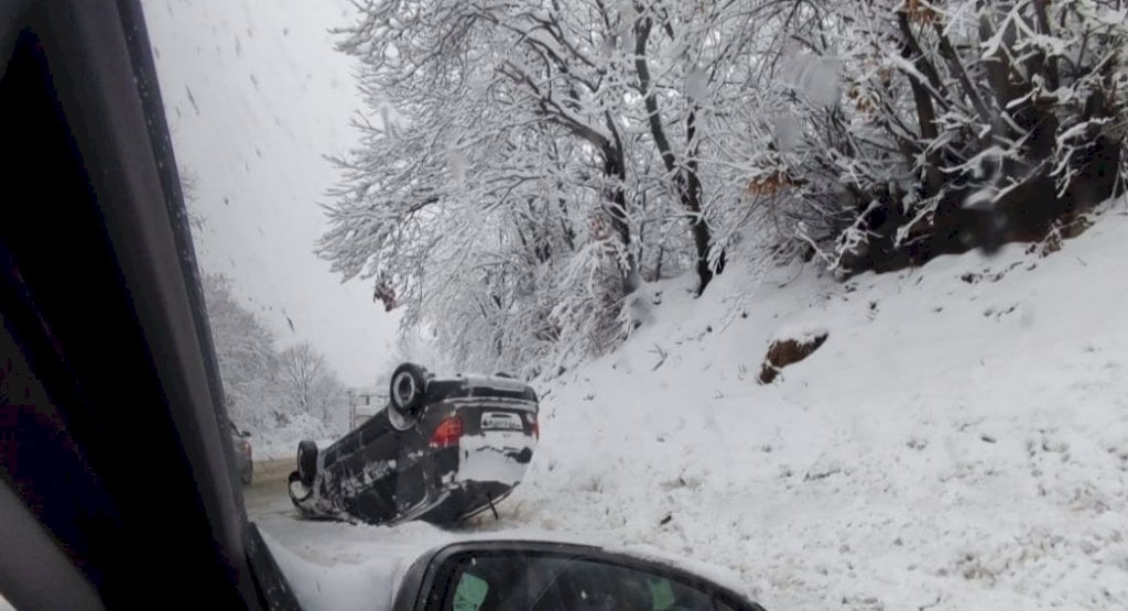 Bufera di neve a Prato Nevoso, auto ribaltata sulla provinciale