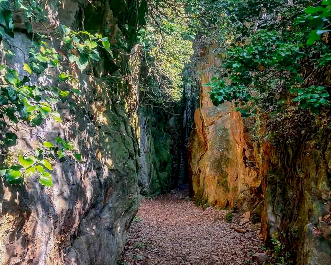 Si tratta di cinque gole di lunghezza variabile, fino a oltre un centinaio di metri, profonde anche una trentina, che si trovano sulla collina dell’Eremo, versante orientale, a quota 650 metri, particolarmente suggestive, dai variegati colori che muovono dal rosa scuro al verde muschio, anche a seconda di come vi incide la luce nelle varie ore del giorno.