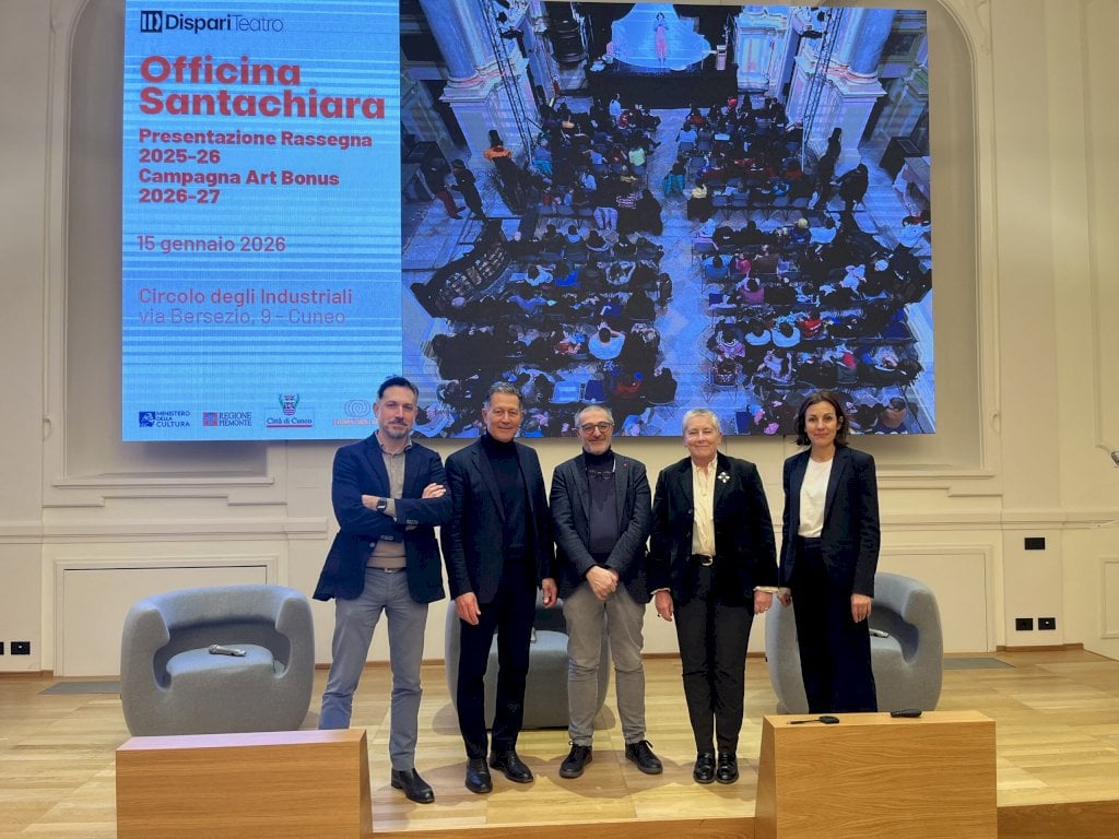 All’illustrazione della stagione teatrale 2026 è seguito il lancio della campagna Art Bonus a favore di Dispari Teatro. Facendo una donazione si potrà sostenere la produzione culturale e la valorizzazione del patrimonio storico e artistico di Officina Santachiara, l’hub teatrale a servizio del territorio individuato nell’ex Chiesa di Santa Chiara, nel centro storico di Cuneo, consentendo così il completamento dei lavori di rifunzionalizzazione della chiesa e contemporaneamente l’arricchimento delle proposte teatrali.