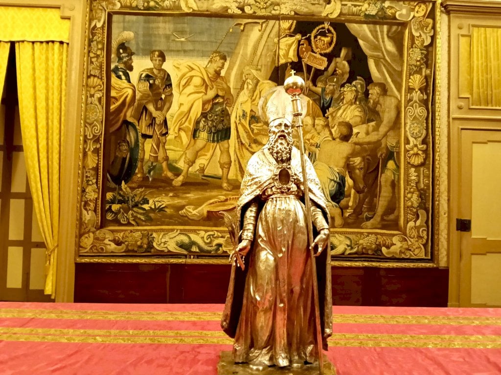 La terza stanza ospita invece una preziosa serie di arazzi realizzati su disegni di Rubens, quattro di una serie originaria di sei, che narrano la storia di Decio Mure, console romano che si sacrificò per la salvezza del suo esercito. Chiude l’esposizione la statua argentea di Sant’Evasio, vescovo e martire, all’interno della quale è custodita una reliquia del suo corpo: un’opera di grande valore simbolico e devozionale, che testimonia il legame profondo tra fede e arte nel territorio monregalese.