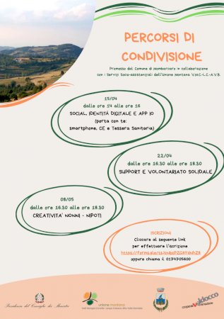 Mercoledì 15 aprile inizieranno invece i “Percorsi di condivisione”, tre appuntamenti dedicati alla creatività, alla digitalizzazione e al tempo libero. Di seguito il calendario completo: