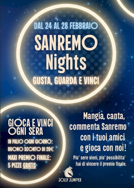 Il locale, dal 24 al 28 febbraio, darà la possibilità agli appassionati di seguire il noto evento musicale in un’atmosfera di convivialitàLa Pizzeria Jolly Jumper di Treiso lancia “Sanremo Nights”, una settimana-evento speciale dedicata al Festival di Sanremo, con aperture straordinarie e orari speciali per accompagnare uno degli appuntamenti televisivi più attesi dell’anno.