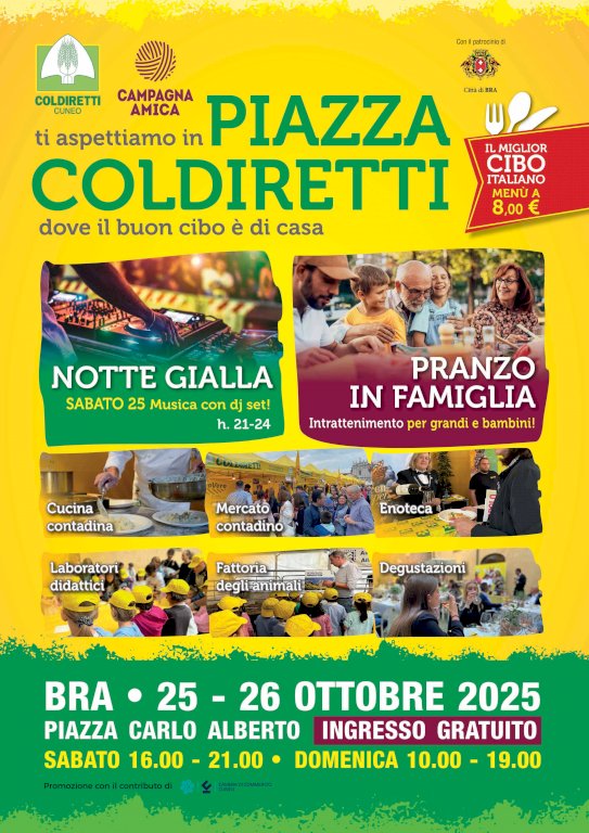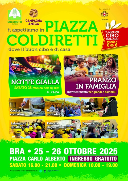 Un evento gratuito per scoprire e assaporare l'agricoltura cuneese, i suoi prodotti e i volti dei produttori che ogni giorno custodiscono il territorioA Bra, il 25 e 26 ottobre, ti aspetta “Piazza Coldiretti, il buon cibo è di casa!”: un intero weekend dedicato ai sapori autentici, alle tradizioni contadine e al divertimento per tutte le età.