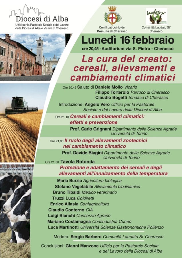 A Cherasco si parla de “La cura del creato: cereali, allevamenti e cambiamenti climatici”
