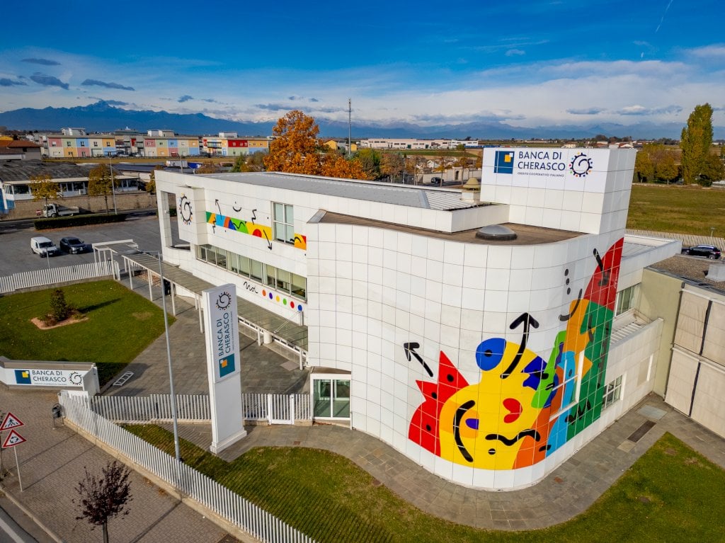 Banca di Cherasco ha scelto la coloratissima arte di Coco Cano per rinnovare la sede