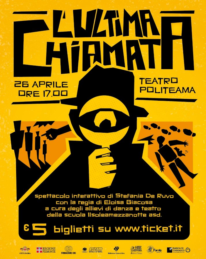 L’ultimo appuntamento della rassegna è in programma per domenica 26 aprile alle 17 presso il Teatro Politeama Boglione, quando si svolgerà lo spettacolo interattivo "L’ultima Chiamata". Scritto da Stefania De Ruvo con la regia di Eloisa Giacosa, lo spettacolo vede protagonisti gli allievi di danza e teatro della scuola “Ilsoleamezzanotte asd”. La trama ci trasporta in una serata di premiazione di un concorso letterario a tema Gialli Noir anni ’30. Tra autori e appassionati, spicca il magnate dell’editoria Luigi Testa, noto per i suoi modi scontrosi. L'atmosfera, già tesa, viene sconvolta da un delitto: Testa viene ucciso. In attesa della polizia, una celebre giallista guiderà le indagini e il pubblico sarà chiamato a partecipare attivamente per scoprire il colpevole.