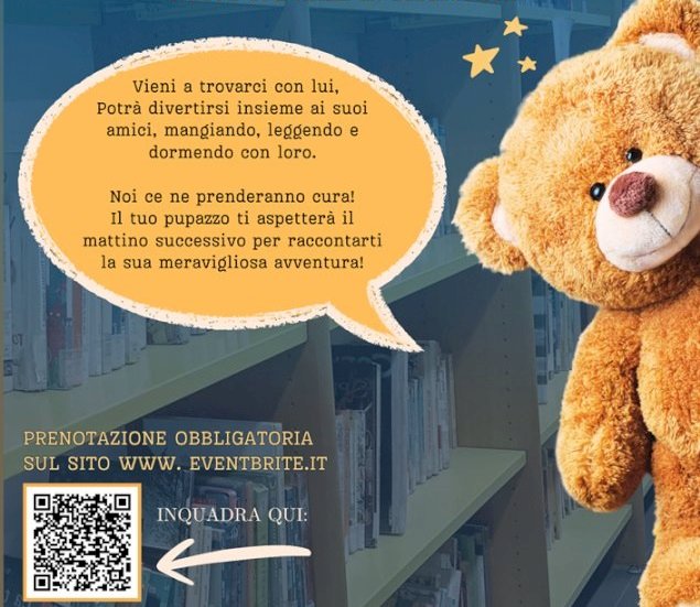 Alle 16.30 bambine e bambini potranno accompagnare personalmente nella struttura di via Guala i loro peluches e pupazzi per affidarli alle cure delle bibliotecarie, consentendo ai loro amici di pezza di vivere un’allegra avventura notturna in compagnia, tra gli scaffali pieni di libri. Il pomeriggio successivo, sabato 18 aprile, dalle 14 alle 15 i peluche attenderanno di essere riabbracciati da tutti i bambini per tornare nelle loro case e condividere la loro meravigliosa avventura.