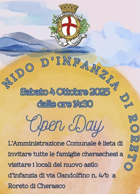 L’open day si svolgerà sabato 4 ottobre dalle ore 14.30 alle ore 17 presso l’Asilo nido comunale di Roreto di Cherasco, in via Gandolfino n.4/b.
