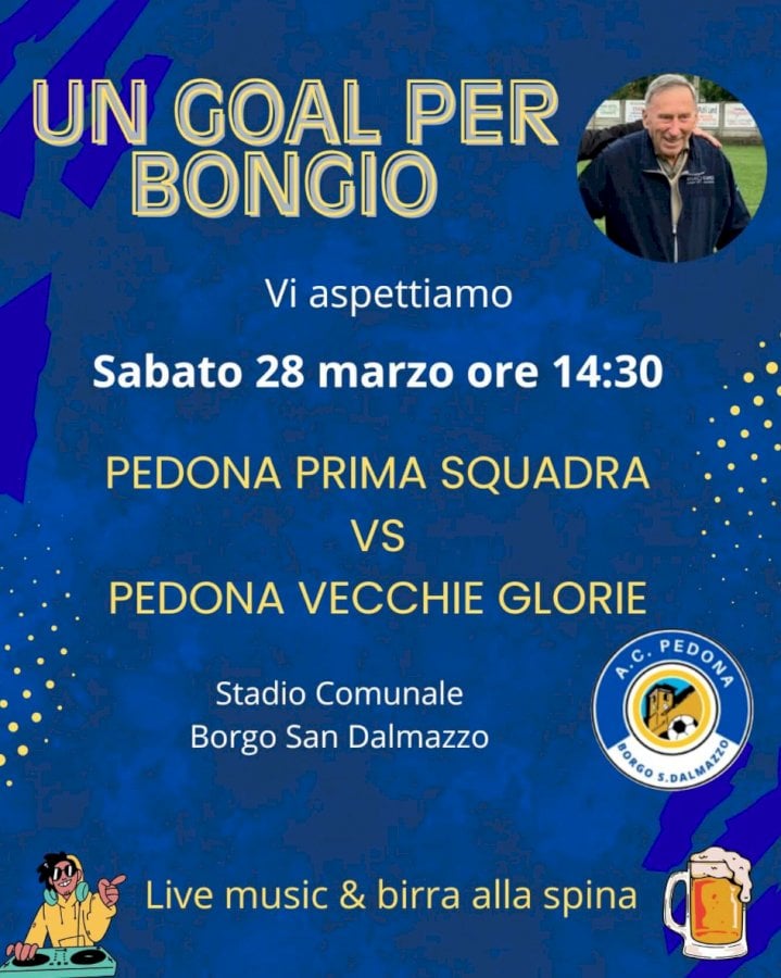 Sabato 28 marzo, alle ore 14.30, si giocherà allo stadio comunale di Borgo San Dalmazzo una “partita del cuore” in memoria di Romano Bongioanni, storico massaggiatore della Pedona scomparso a gennaio all’età di 82 anni. La società borgarina ha deciso di ricordarlo “nel modo che avrebbe amato di più”, si legge nella locandina, ossia “insieme, con il calcio nel cuore”.