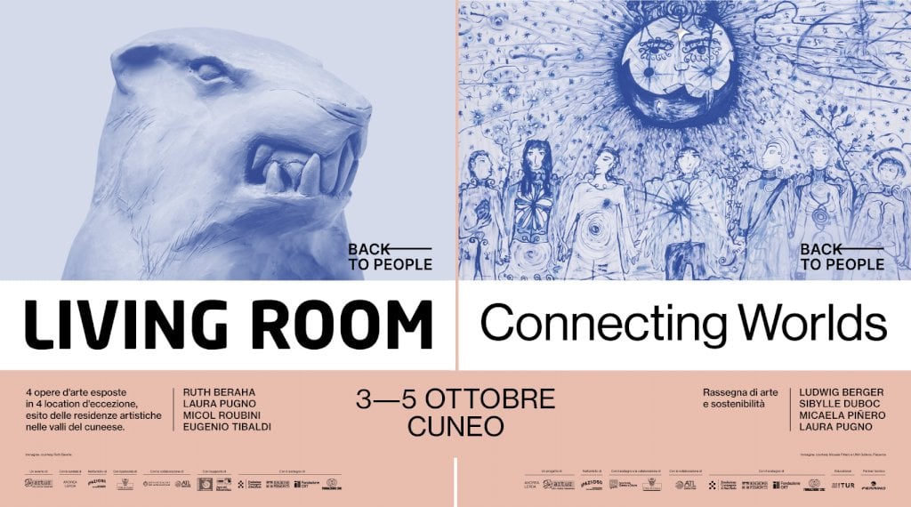 Living Room e Connecting Worlds, inclusi nell'evento, raccontano territori, giovani, natura e nuovi modelli di futuroVenerdì 3, sabato 4 e domenica 5 ottobre torna il fine settimana dell’arte contemporanea cuneese. Due appuntamenti consolidati – l’evento espositivo frutto delle residenze d’artista di "Living room" e la rassegna di arte e sostenibilità Connecting Worlds – si uniscono sotto un unico titolo: Back to People. Un invito a riscoprirci sia come individui capaci di stringere alleanze e per ricostruire relazioni equilibrate con il mondo naturale, sia come collettività in grado di immaginare nuovi paradigmi sociali.
