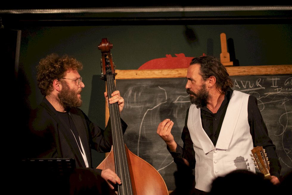 Lo spettacolo coniuga teatro di narrazione, teatro musicale e teatro d’attore. In scena tre attori-musicisti accompagnano il pubblico in questo viaggio sulle note swing di una piccola orchestrina composta da fisarmonica, contrabbasso e mandolino. Il racconto si arricchisce di suggestioni musicali che spaziano dal repertorio italiano leggero al rock, dal folk al classico fino all’opera, creando un tessuto sonoro dinamico ed evocativo.