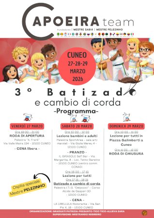 Dal 27 al 29 marzo, si svolgerà a Cuneo uno stage di Capoeira con i maestri: