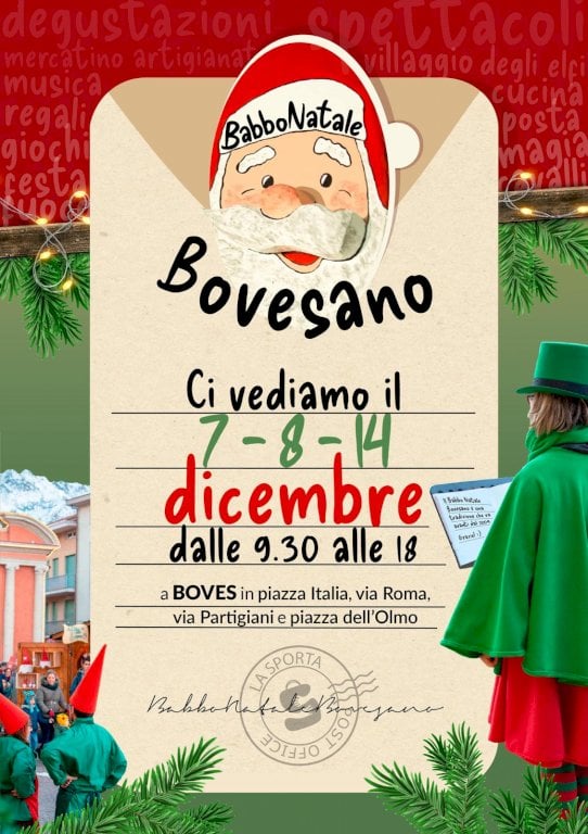 Il Babbo Natale Bovesano dell’associazione La Sporta è già dietro l’angolo e aspetta tutti domenica 7 e lunedì 8 dicembre e, nuovamente domenica 14 dicembre, dalle ore 9,30 alle 18.