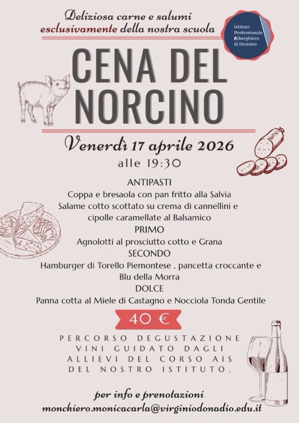 Il 17 aprile si terrà un’iniziativa nata con l’obiettivo di valorizzare le migliori carni del territorio, che unisce formazione e tradizioneL’Istituto Alberghiero “Virginio Donadio” di Dronero organizza venerdì 17 aprile alle ore 19.30 una serata speciale dedicata alla norcineria, con la “Cena del Norcino”, evento che segna anche l’inaugurazione del nuovo percorso formativo avviato all’interno della scuola.