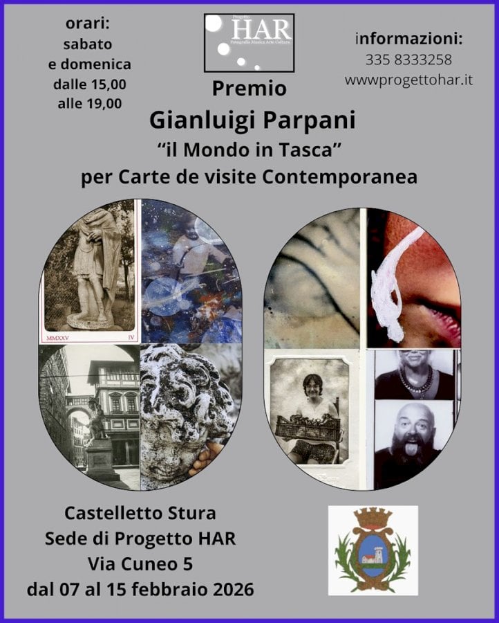 Saranno esposte le Carte de Visite Contemporanee che hanno partecipato al Premio Gianluigi Parpani “Il Mondo in Tasca - 2025”.