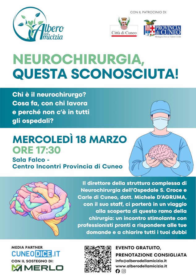 Sala Falco, Centro Incontri Provincia di Cuneo, ore 17.30 prevenzione - Santa Croce - Neurochirurgia - L'albero dell'amicizia