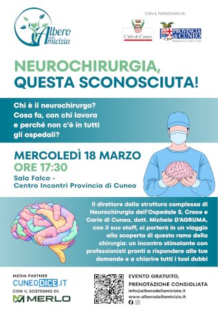 Protagonista dell’incontro sarà il direttore della Struttura Complessa di Neurochirurgia dell’Ospedale Santa Croce e Carle di Cuneo, il dottor Michele D’Agruma, che insieme al suo staff accompagnerà il pubblico in un viaggio alla scoperta di una delle specialità mediche più complesse e affascinanti.