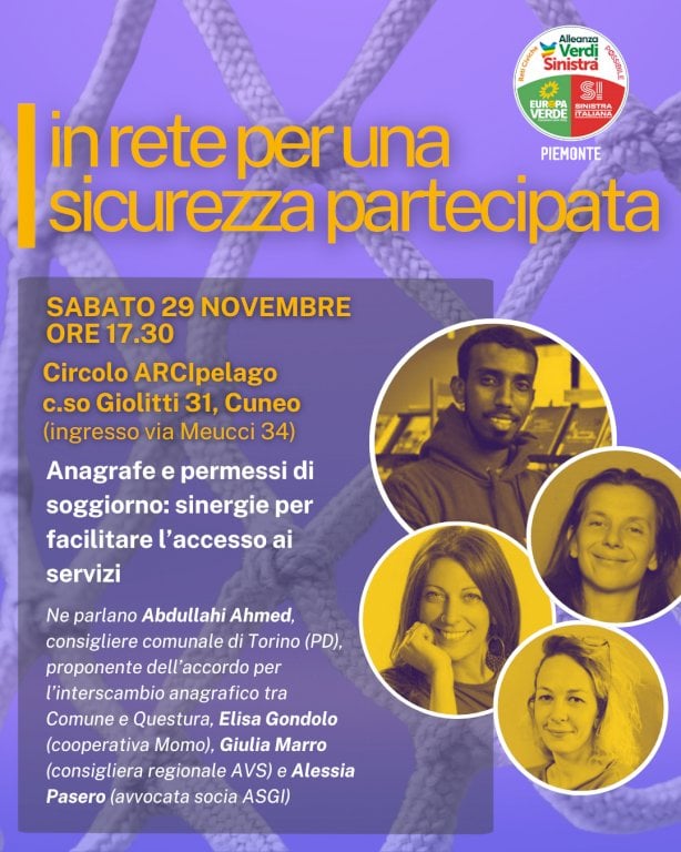 Al centro dell’incontro vi sarà un confronto sulle pratiche amministrative e sulle sinergie che possono migliorare il rapporto tra cittadini, uffici comunali e Questura, garantendo maggiore trasparenza, efficienza e inclusione. Sarà presente Abdullahi Ahmed, consigliere comunale di Torino e promotore dell’accordo per l’interscambio anagrafico tra Comune e Questura, che porterà l’esperienza torinese e possibili spunti di lavoro applicabili anche al contesto cuneese.