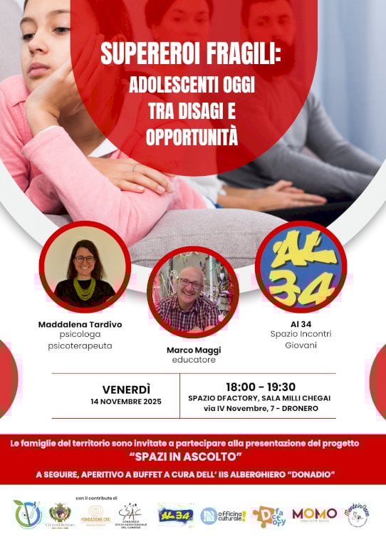 Dronero, spazio all'incontro “Supereroi Fragili: adolescenti oggi tra disagi e opportunità”