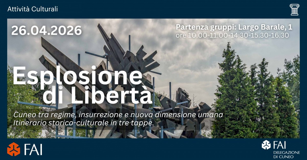 Un viaggio in tre tappe per riscoprire l’anima della città: dal "cuore" del regime all’insurrezione partigiana, fino al grido di bronzo di MastroianniGuardare la propria città con occhi nuovi, scorgendo tra le pieghe dell’architettura e del bronzo i segni di un’alba che ha cambiato la storia d’Italia. In occasione della Festa della Liberazione, la Delegazione FAI di Cuneo organizza “L’esplosione della libertà”, un itinerario narrativo ed emozionale volto a far riflettere sul percorso che portò la città dal buio della dittatura alla luce della democrazia.