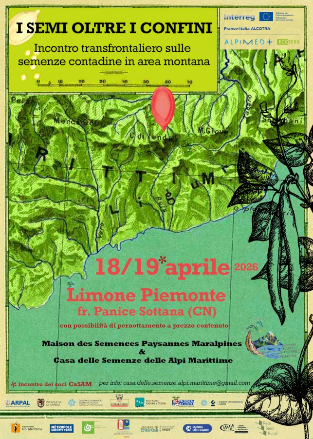 Appuntamento presso la Casa Via del Sale per un'occasione di scambio ed esperienze tra le varie realtà regionaliL’Associazione Casa delle Semenze delle Alpi Marittime in collaborazione con la Maison Semences Paysannes Maralpine - promuovono sabato 18 aprile l’iniziativa I semi oltre i confini – un incontro transfrontaliero sulle semenze contadine in area montana.