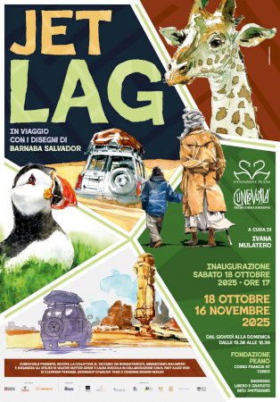 Nella Sala Soprana della Fondazione Peano è allestita, inoltre, la mostra personale di un importante autore professionista e maestro della particolare forma d’arte del carnet de voyage con i pennini e le chine. Per questa edizione 2025, la Fondazione Peano è onorata di presentare il carnettista veneziano Barnaba Salvador dal titolo “Jet Lag”, con un inedito allestimento che metterà in relazione visiva i tanti taccuini realizzati nel continente africano con le gigantografie e le singole pagine di carnet i cui dettagli sulle persone incontrate, gli animali e le cose saranno posti a distanza molto ravvicinata per creare suggestioni e nuove meraviglie.