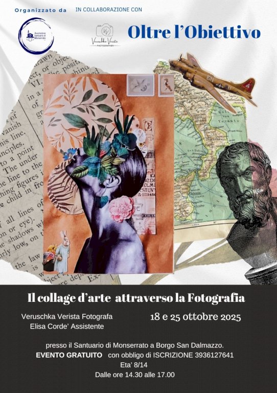 Un laboratorio gratuito per ragazze e ragazzi dagli 8 ai 14 anni a Borgo San Dalmazzo, in programma per il 18 e 25 ottobreL’Associazione Monserrato odv, in collaborazione con la fotografa ed educatrice Veruschka Verista, presenta Oltre l’Obiettivo: la fotografia come espressione artistica attraverso il collage, un laboratorio gratuito dedicato a ragazze e ragazzi dagli 8 ai 14 anni.