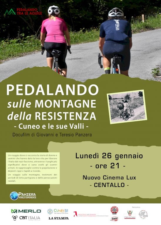 Il docu-film sarà presentato al Cinema Lux di Centallo alle ore 21 di lunedì 26 gennaioLunedì 26 gennaio alle ore 21 presso il Cinema Lux di Centallo verrà presentato l’ultimo lavoro dei fratelli Panzera, il docufilm “Pedalando sulle montagne della Resistenza - Cuneo e le sue valli”. Un altro capitolo dell’ambizioso progetto “Pedalando tra le Aquile” che questa volta valorizza le montagne di “casa” che 80 anni fa sono state testimoni della lotta partigiana e delle persecuzioni razziali.