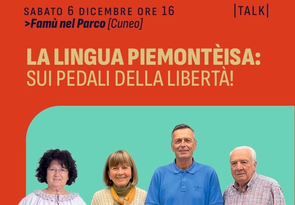 Sabato 6 dicembre alle ore 16 presso Famù nel Parco a Cuneo l'evento promosso con il festival Poeticôni; protagonisti Candida Rabbia, Lucia Renaudo, Lorenzo Giraudo e Pietro Paolo AimarSabato 6 dicembre alle ore 16, presso Famù nel Parco a Cuneo (viale Angeli 25), si terrà il talk "La lingua piemontèisa: sui pedali della libertà!", promosso dal Cuneo Bike Festival e dal festival Poeticôni. L'evento, realizzato con il sostegno del Consiglio Regionale del Piemonte, sarà l'occasione per scoprire la lingua del territorio come strumento di libertà di movimento interiore. La poesia, proprio come la bicicletta sulle nostre strade, simboleggia autonomia e la possibilità di fare scelte stilistiche che rompono gli schemi. Moderati da Luca Isoardo, quattro poeti cuneesi - Candida Rabbia, Lucia Renaudo, Lorenzo Giraudo e Pietro Paolo Aimar - leggeranno i loro versi inediti, celebrando la libertà e il vento che scorre fra i pensieri, con la bellezza della lingua piemontese. Il talk, inserito nel programma Off sia del Cuneo Bike Festival, sia del festival Poeticôni, la cui seconda edizione si svolgerà a Cuneo dal 29 gennaio al primo febbraio 2026, è a ingresso gratuito con prenotazione obbligatoria su Eventbrite a questo link.