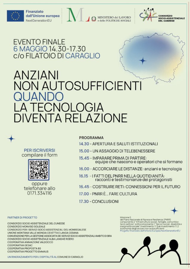 I risultati, le esperienze e le prospettive future del progetto saranno al centro dell’incontro del 6 maggio presso il Filatoio di Caraglio, un’occasione per condividere buone pratiche e riflettere sul ruolo della tecnologia nei servizi alla persona.