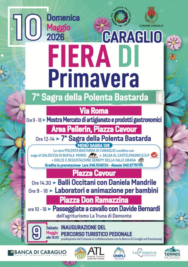 In occasione della Fiera di Primavera, domenica 10 maggio torna l’appuntamento organizzato dalla pro loco sotto l’area del PellerinDomenica 10 maggio si terrà a Caraglio la Fiera di Primavera, la manifestazione dedicata all’artigianato, ai prodotti tipici, a tutte le attività del nostro territorio organizzata dall’associazione turistica Pro Loco Insieme per Caraglio in collaborazione con il Comune di Caraglio. La fiera si svilupperà lungo l’intero asse di via Roma.