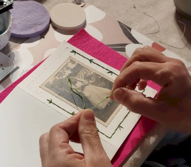 Un laboratorio di ricamo su fotografia a Borgo San Dalmazzo