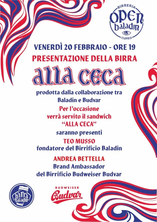 Un’occasione per scoprire la birra inedita nata dalla nuova collaborazione con lo storico birrificio della Repubblica Ceca Budweiser BudvarIl 20 febbraio alle ore 18.30, presso Open Baladin Cuneo in piazza Foro Boario, verrà presentata un’importante collaborazione e una birra inedita: “Alla Ceca”, la prima lager di Baladin, realizzata insieme allo storico birrificio della Repubblica Ceca Budweiser Budvar.