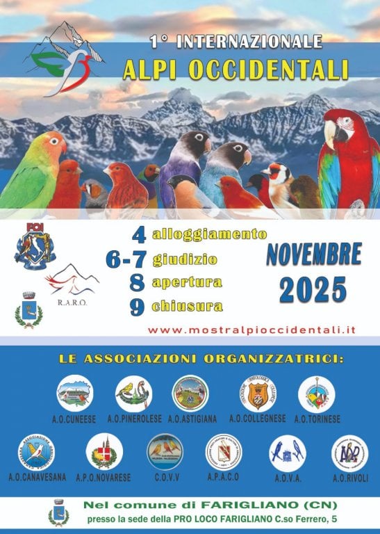 Un grande evento, alla sua prima edizione, ed unica per tutto il territorio del Nord-Ovest, che nasce con l’obbiettivo di celebrare la straordinaria varietà del mondo avicolo, promuovere la tutela della biodiversità ed offrire un’occasione di incontro e confronto tra allevatori, studiosi, hobbisti e semplici curiosi provenienti dall’Italia e dall’estero. In esposizione, migliaia di esemplari di uccelli da compagnia, ornamentali ed esotici, selezionati secondo rigorosi standard di qualità e benessere animale. La Prima Mostra Ornitologica Internazionale delle Alpi Occidentali rappresenta non solo un evento espositivo, ma anche un importante occasione culturale per sensibilizzare il pubblico sul rispetto dell’ambiente, la conservazione delle specie ed il ruolo dell’uomo nella salvaguardia del patrimonio naturale.