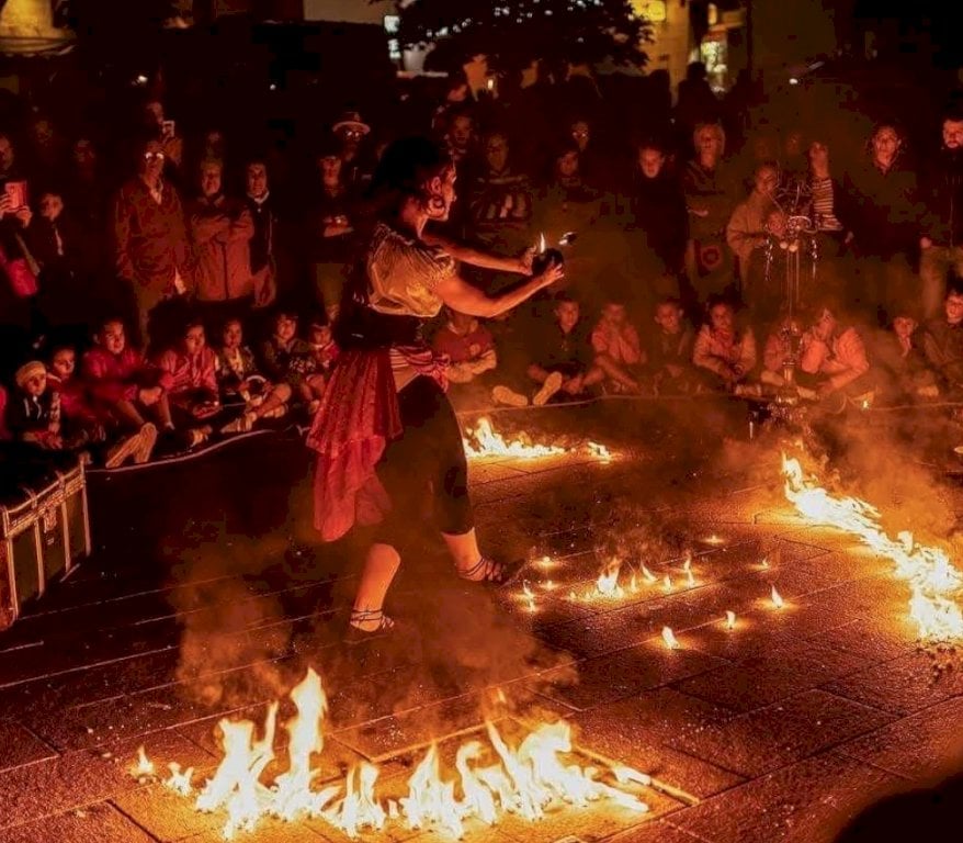 Giocoleria, teatro di strada, clownerie e manipolazione del fuoco incontreranno così il pubblico coinvolgendolo e trasportandolo nel mondo delle fiamme di carta, senza mai tralasciare quell’importante filo conduttore di magia che connette le persone quando si incontrano in cerchio intorno al fuoco.