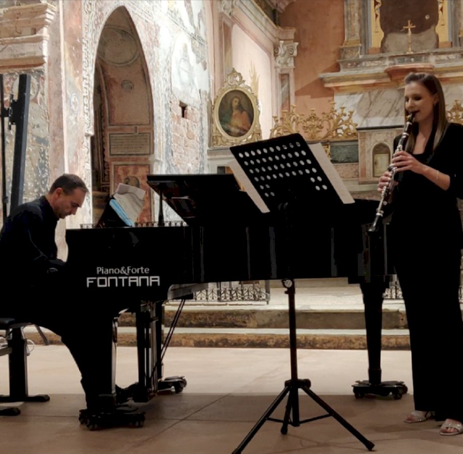 Il Duo formato da Silvia Storchi al clarinetto e Valter Protto al pianoforte propone un affascinante percorso tra lirismo romantico, raffinatezza novecentesca e vitalità contemporanea. Il programma si apre con la Sonata op. 120 n. 1 di Johannes Brahms, pagina intensa e introspettiva che mette in luce la profonda cantabilità del clarinetto in dialogo con la ricchezza timbrica del pianoforte. Segue la Sonata di Francis Poulenc, caratterizzata da un linguaggio elegante e contrastante, in cui malinconia e brillantezza si alternano con grande espressività. Chiude il concerto il celebre Danzón n. 2 di Arturo Márquez, in un arrangiamento di Valter Protto, che porta sul palco ritmi e colori della tradizione latino-americana, offrendo una conclusione energica e coinvolgente.